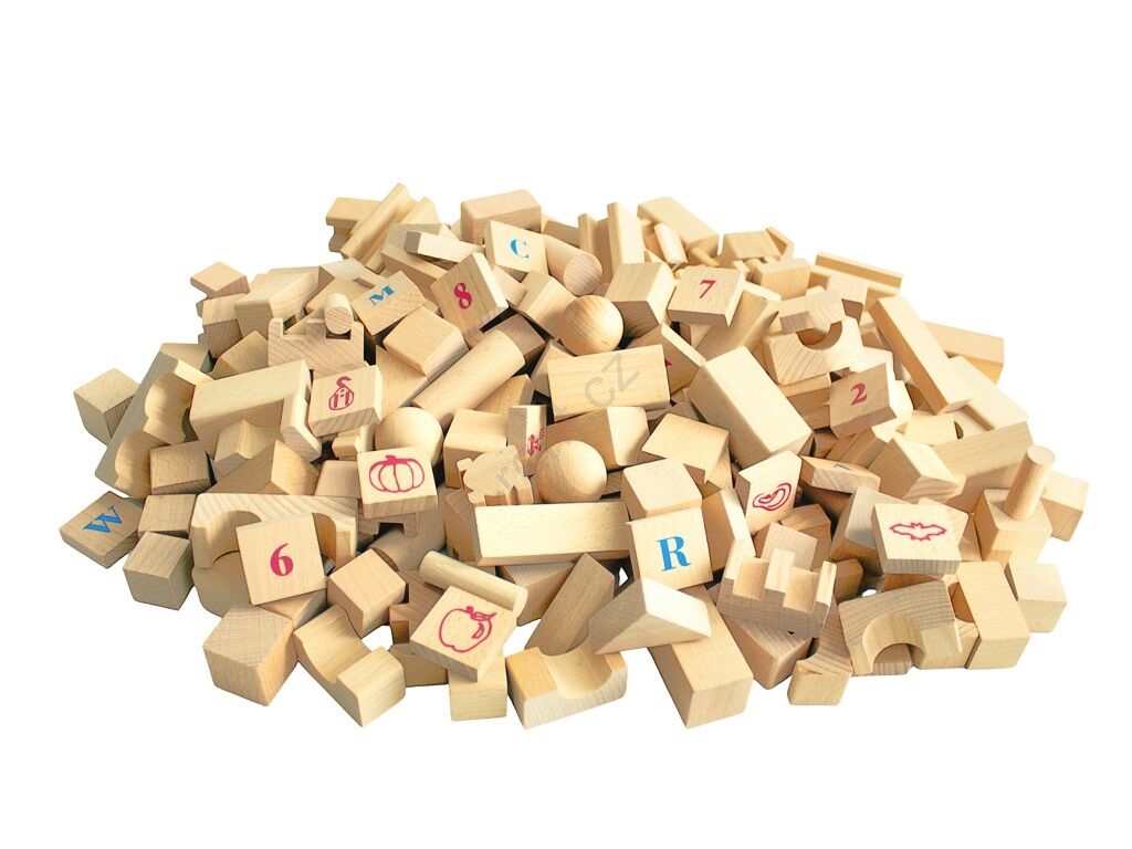 • Sada 220 dřevěných kostek nabízí nekonečné možnosti stavění, tvoření a objevování.