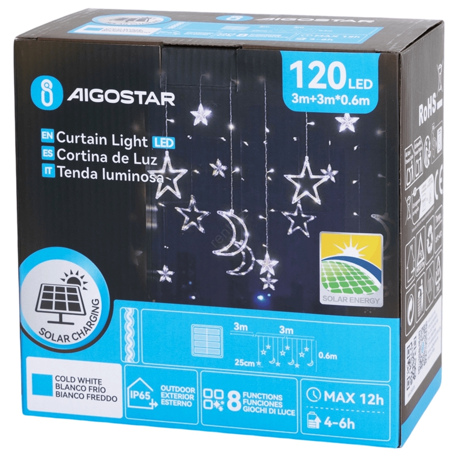 Aigostar - LED Solární vánoční řetěz 120xLED/8 funkcí 3x0,6m 500 mAh IP65 studená bílá