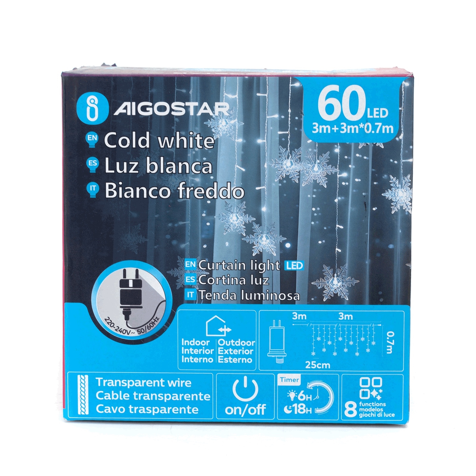 Aigostar - LED Venkovní vánoční řetěz 120xLED/8 funkcí 3x0,7m IP44 studená bílá + dálkové ovládání