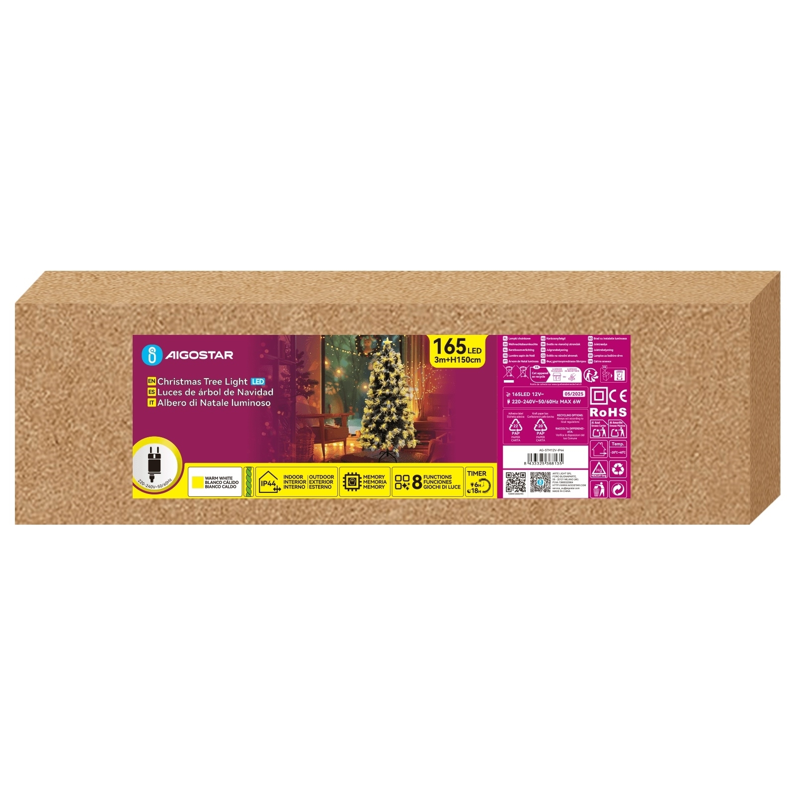 Aigostar - LED Venkovní vánoční stromek 165xLED/8 funkcí 1,5 m IP44 teplá bílá