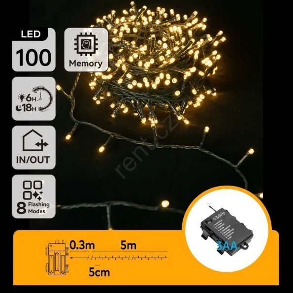 Aigostar - LED Venkovní vánoční řetěz 100xLED/8 funkcí 3xAA 5,3 m IP44 teplá bílá