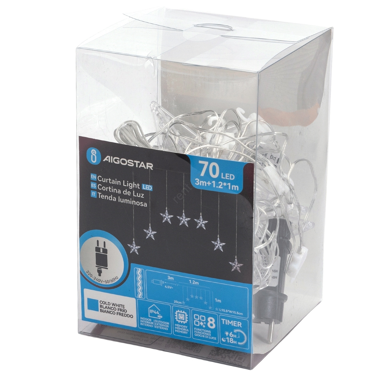 Aigostar - LED Venkovní vánoční řetěz 70xLED 1,2x1m IP44 studená bílá hvězdy