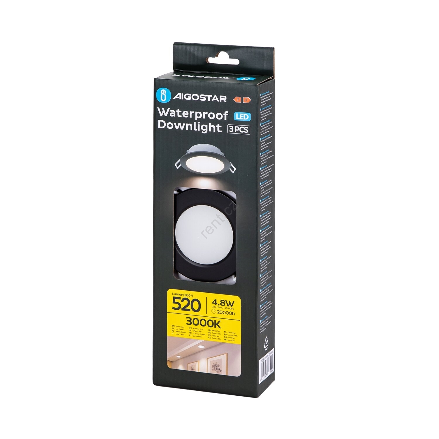• Aigostar - SADA 3x LED Koupelnové podhledové svítidlo LED/4,8W/230V 3000K IP65 černá
