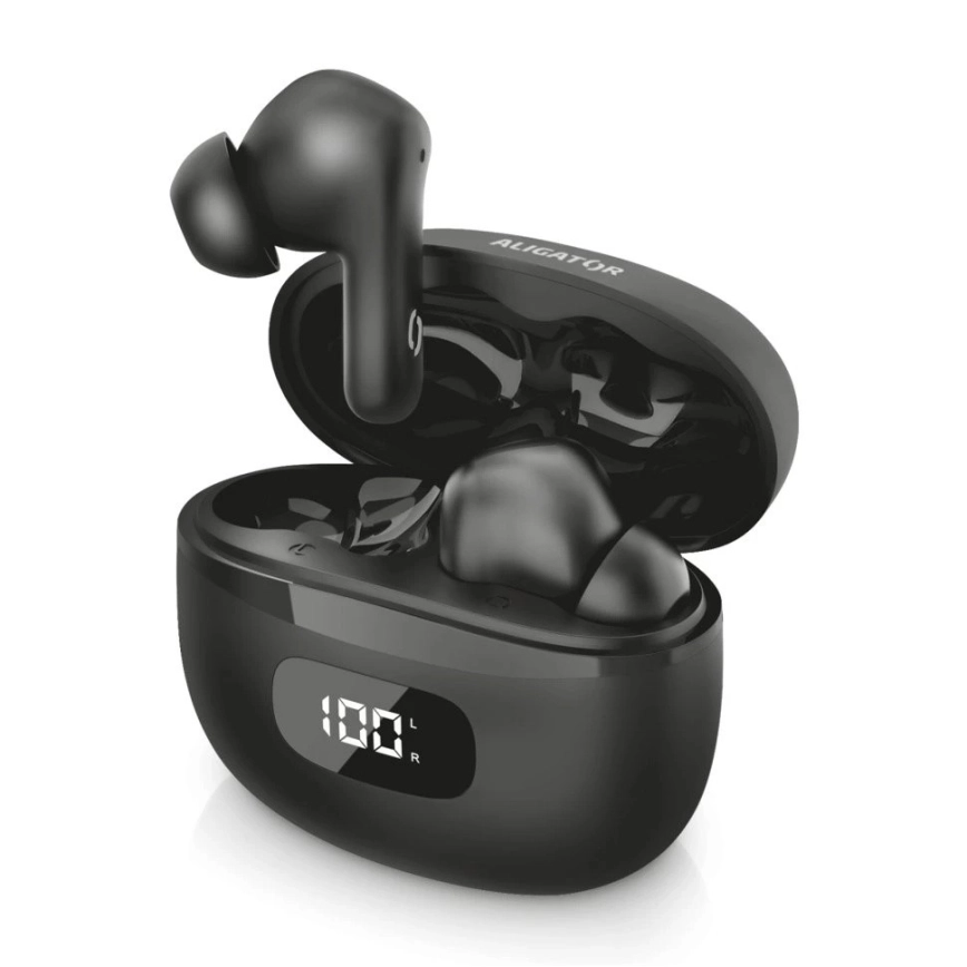 Aligator TWS08BK - Bezdrátová sluchátka s ANC 200 mAh + 2x 30 mAh IP40 černá