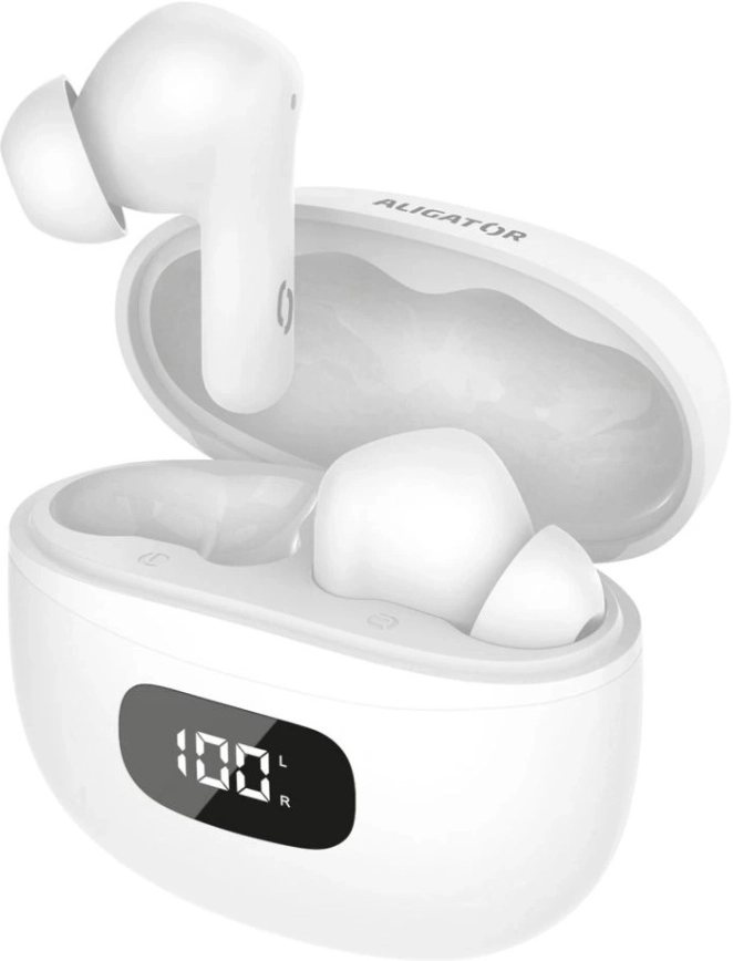 Aligator TWS08WT - Bezdrátová sluchátka s ANC 200 mAh + 2x 30 mAh IP40 bílá