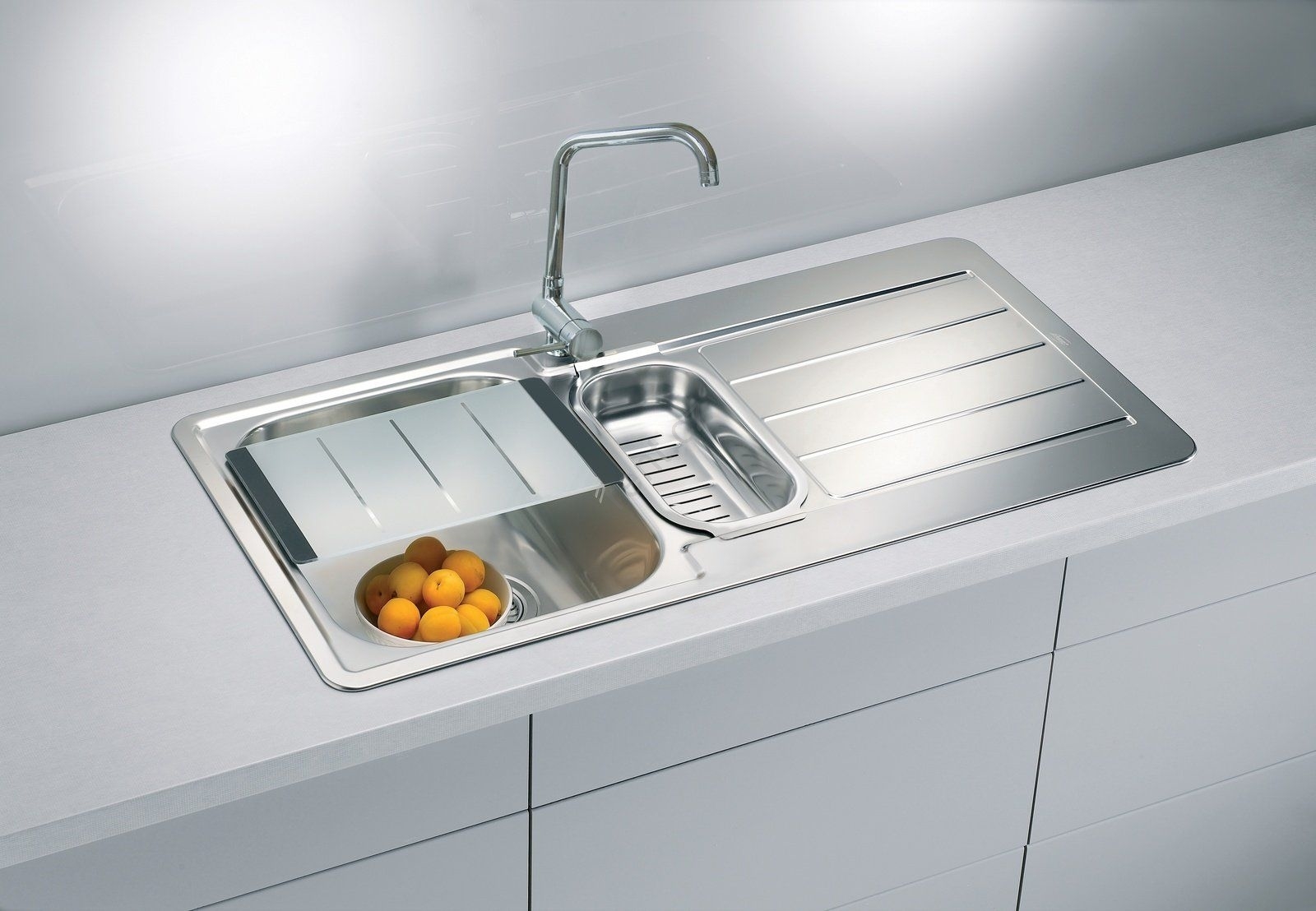 • Obsah balení: nerezový dřez, příchytky a těsnění, sítkový ventil 3 1/2, sifon s odbočkou na myčku.