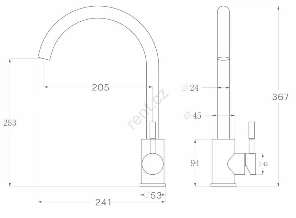 • Jednopáková kuchyňská baterie s vysokým tlakem a otočným ramenem.
