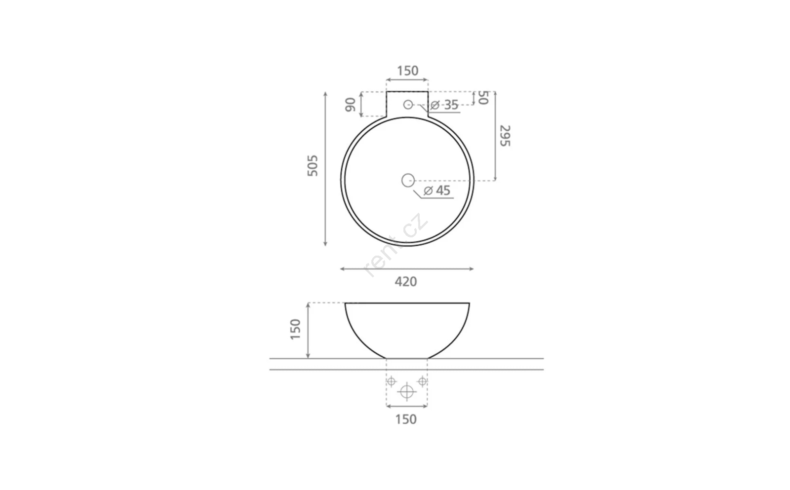 • Balení obsahuje umyvadlo bez sifonu a baterie.