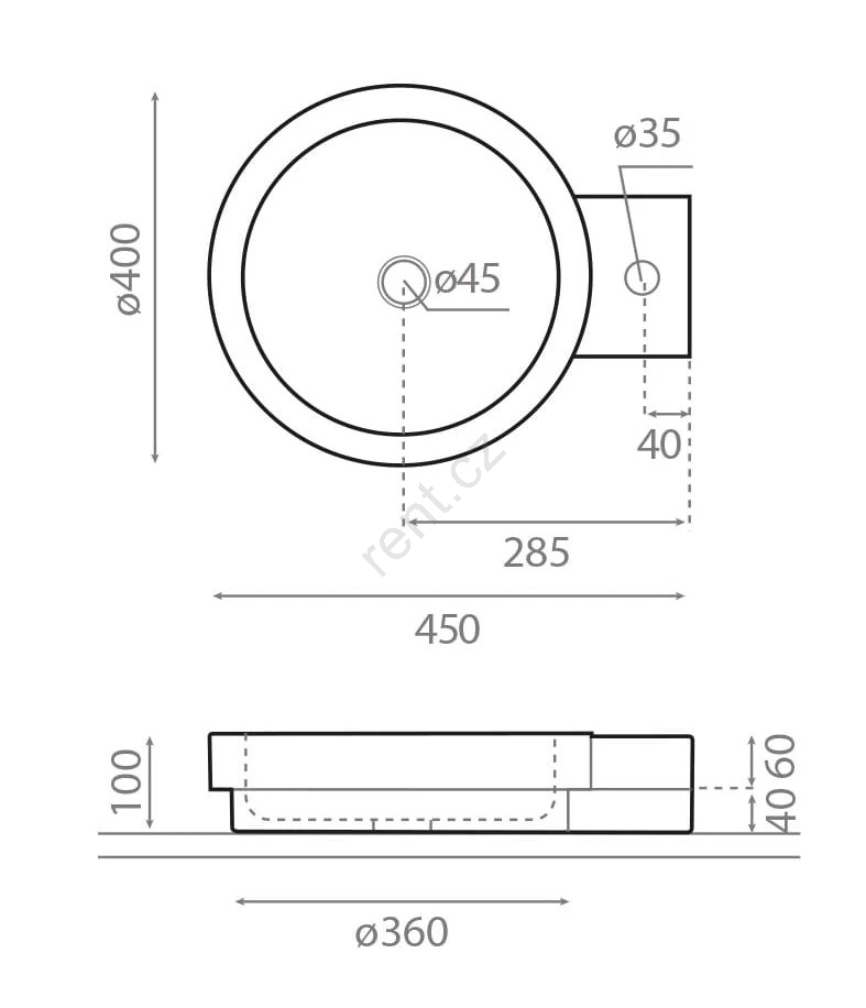 • Moderní a elegantní umyvadlo bez přepadu.