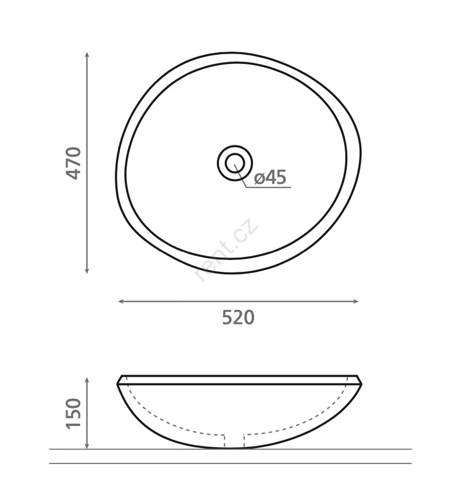 Bathco 00393 - Umyvadlo na desku RIO 52x47 cm kámen/šedá