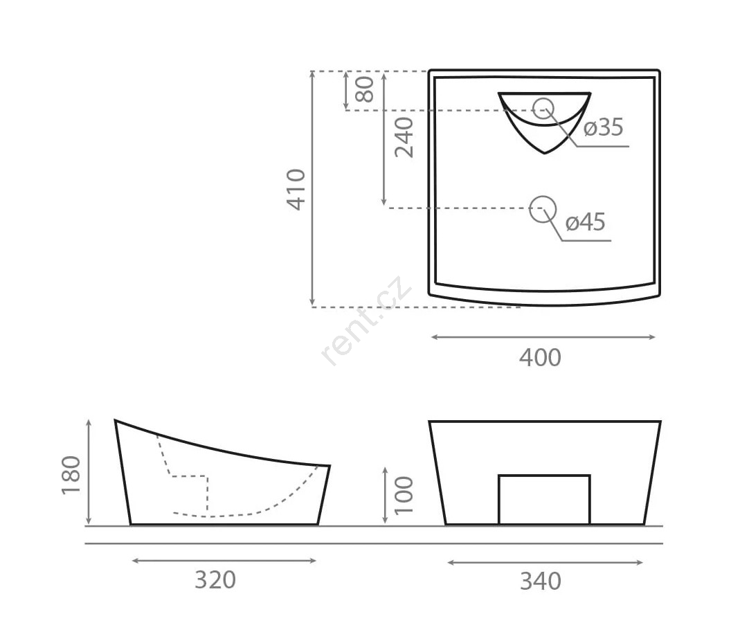 • Balení obsahuje umyvadlo bez sifonu a baterie.