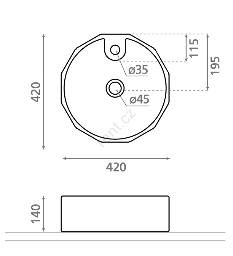 Bathco 4158 - Umyvadlo na desku CIRCUS pr. 42 cm porcelán/bílá
