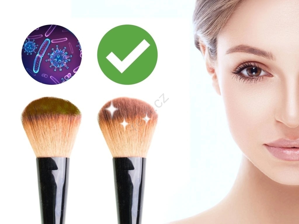 • Zbavení se zbytků make-upu přispívá k lepšímu vzhledu štětců a zdravé pokožce bez nečistot.