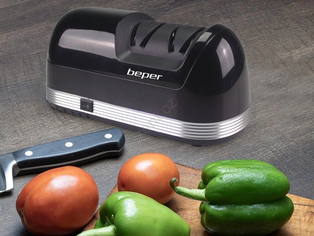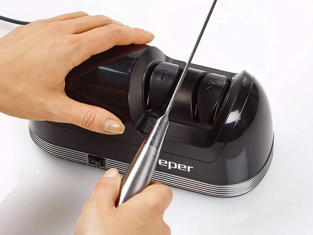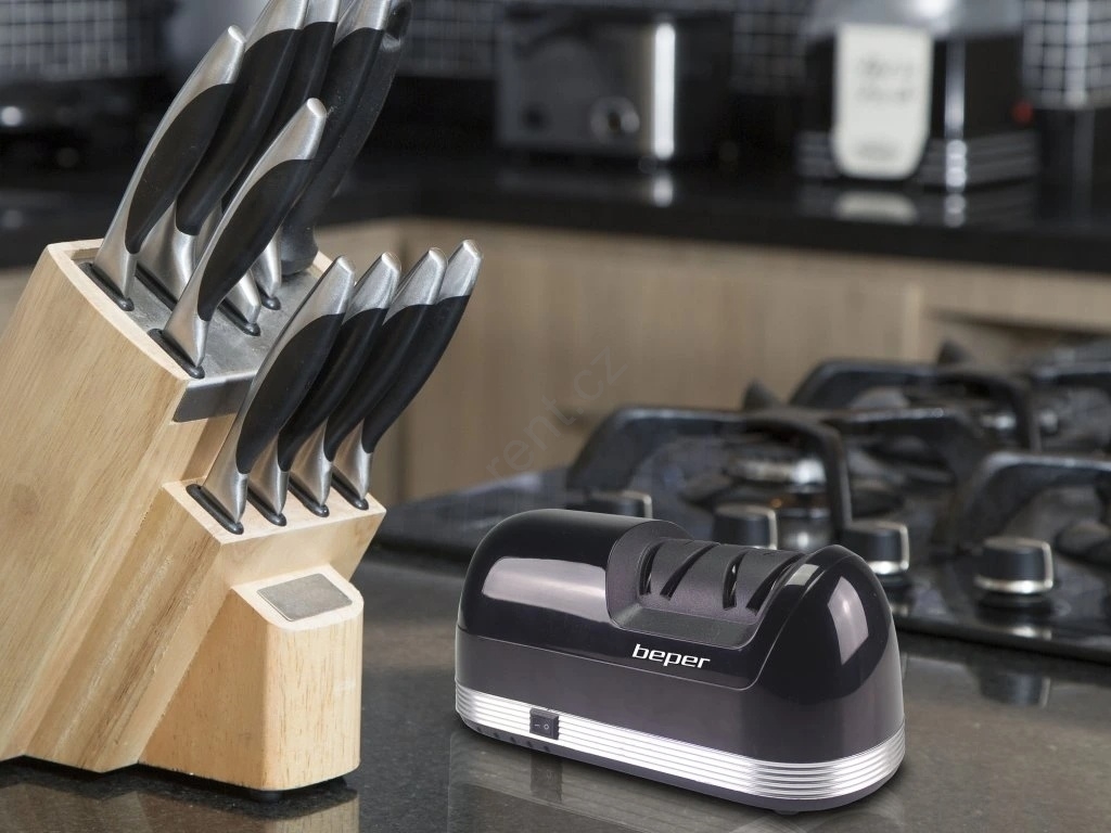 • Elektrický dvoukomorový brousek na nože je dodáván v elegantním černém designu.