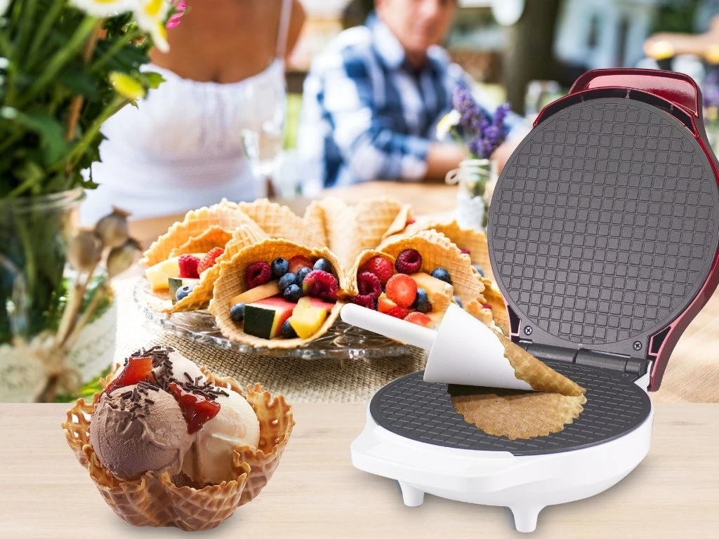 • Ideální pro přípravu sladkých a slaných vaflí, kornoutů a košíčků na zmrzlinu, rolek apod.