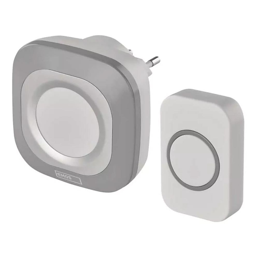 Bezdrátový zvonek do zásuvky 230V + 1xCR2032 IP44 šedá
