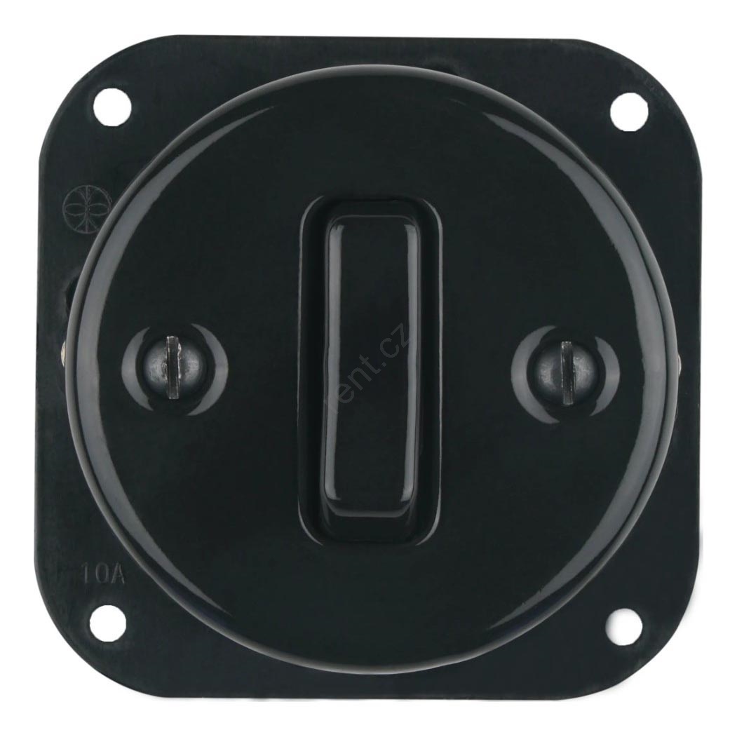 Bohemia-Design - Porcelánový retro jednoduchý vypínač bez rámečku č. 6 černá