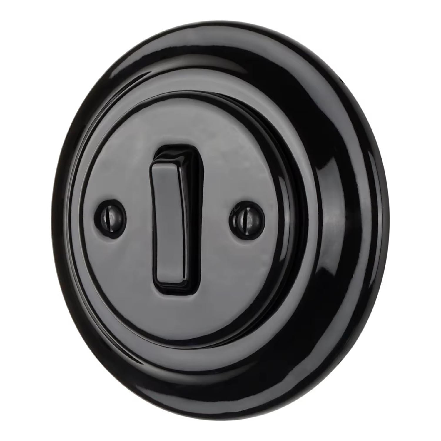 Bohemia-Design - Porcelánový retro jednoduchý vypínač s rámečkem č. 1 černá