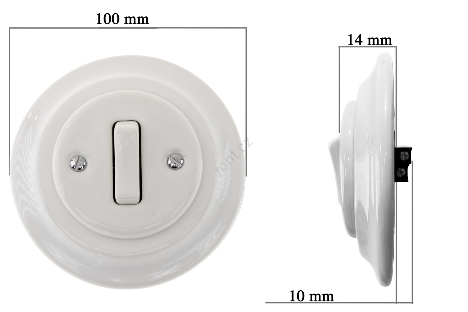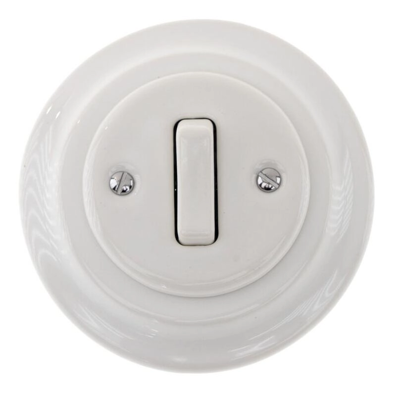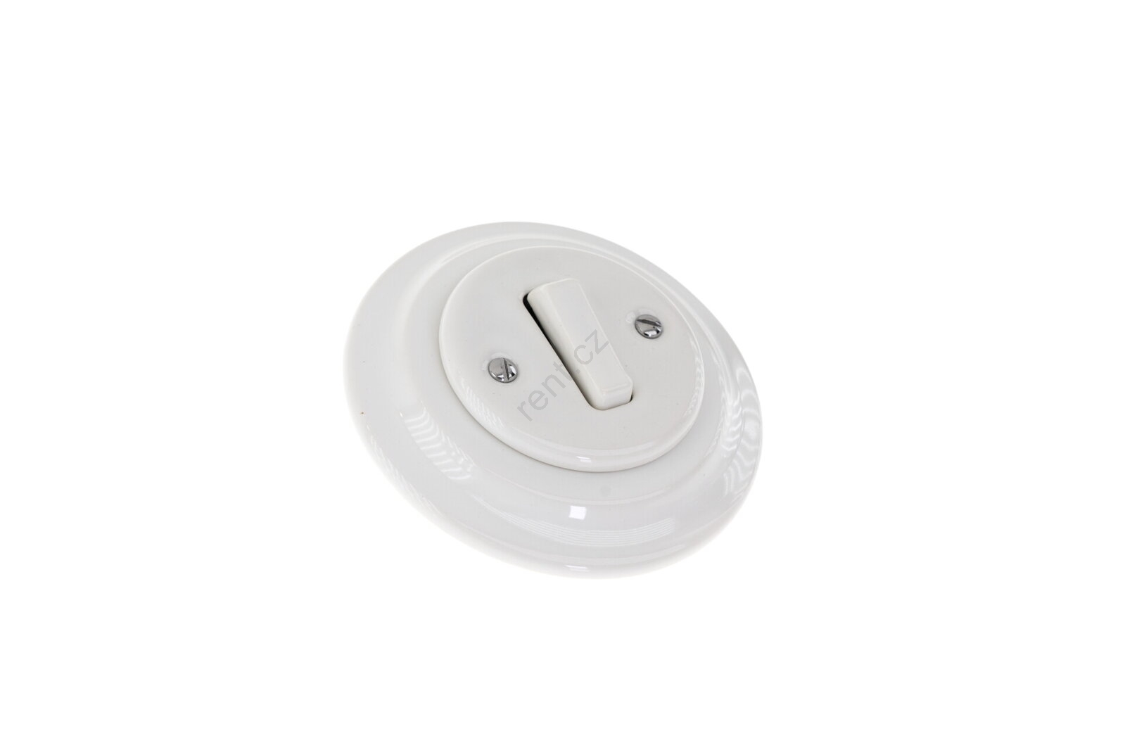 Bohemia-Design - Porcelánový retro jednoduchý vypínač s rámečkem č. 6 bílá