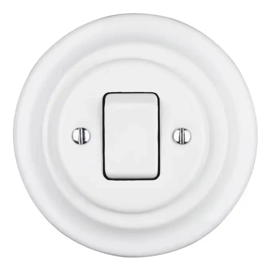 Bohemia-Design - Porcelánový retro jednoduchý vypínač s rámečkem č. 7 bílá