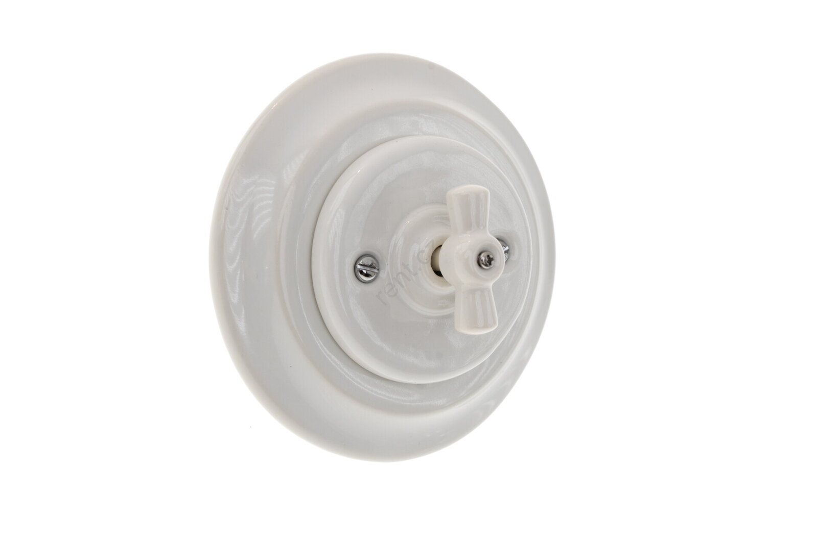Bohemia-Design - Porcelánový retro vypínač otočný s rámečkem č. 7 bílá