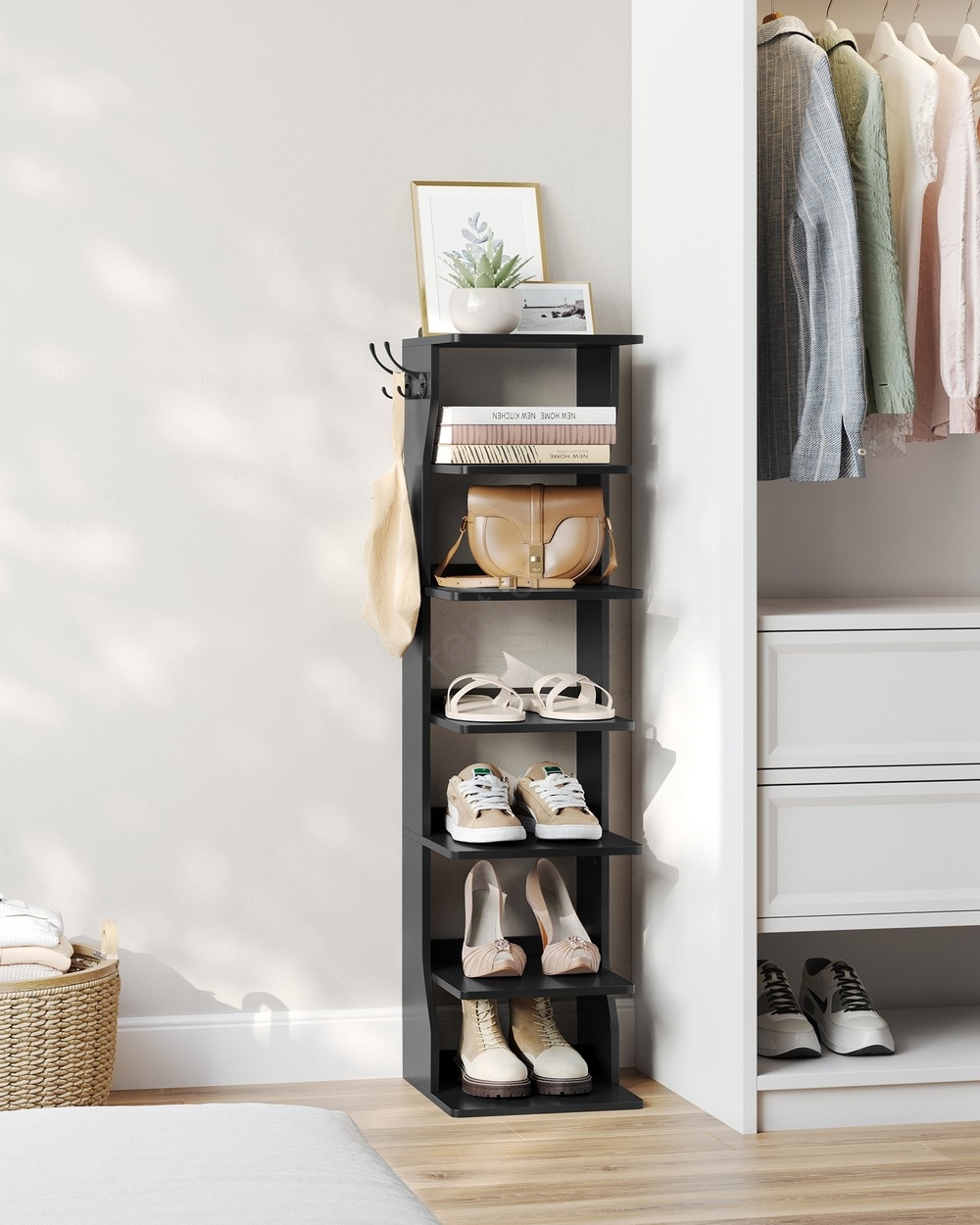 • Díky svému štíhlému tvaru zabírá tento 7patrový botník málo místa na podlaze a přitom nabízí dostatek úložného prostoru.