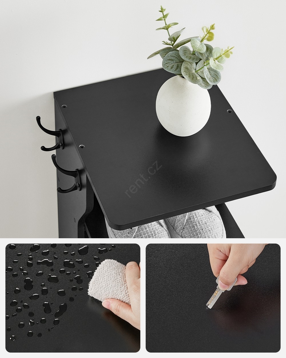• Zavěste si klíče a peněženky na 2 háčky, které lze potřeby nainstalovat vlevo nebo vpravo.