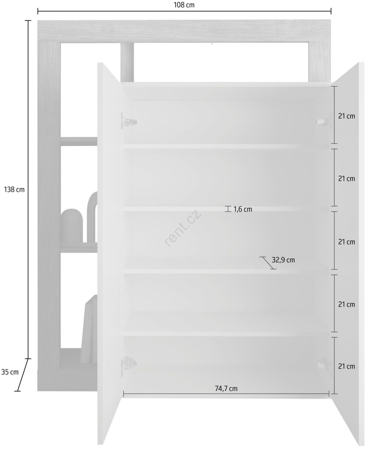 • Disponuje 4 otevřenými policemi, a 5 vnitřními přihrádkami na uložení tašek, bot a sezónních věcí.