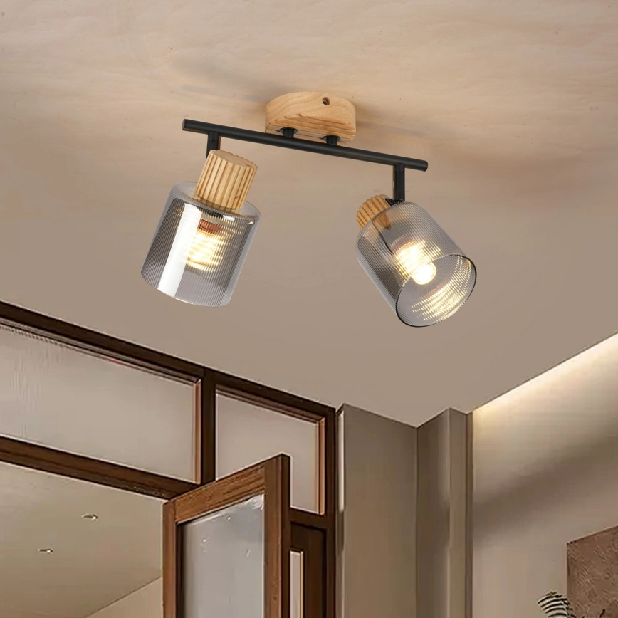 Brilagi - Bodové svítidlo HYGGE 2xE14/15W/230V dřevo/kouřová