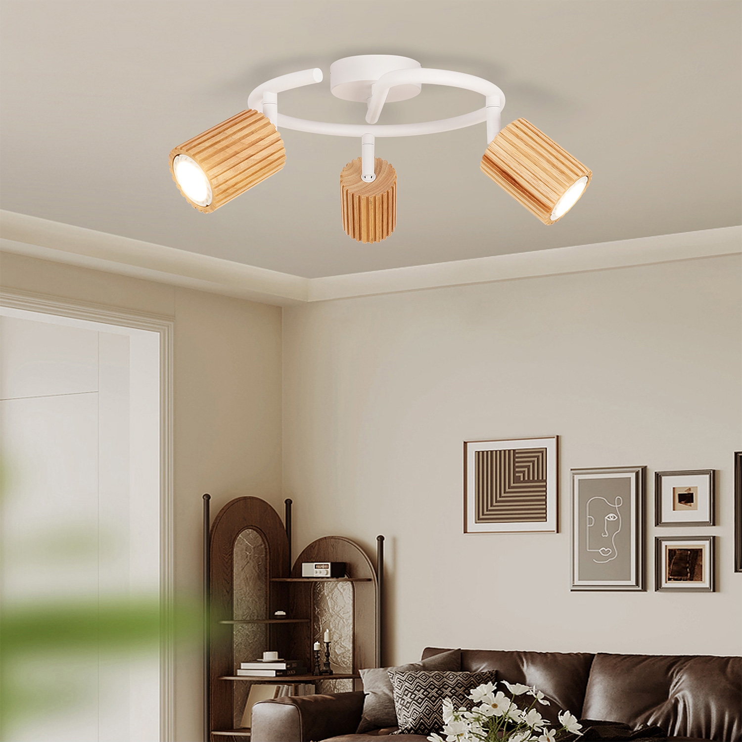 Brilagi - Bodové svítidlo MODERN WOOD 3xGU10/8W/230V kaučukovník/bílá