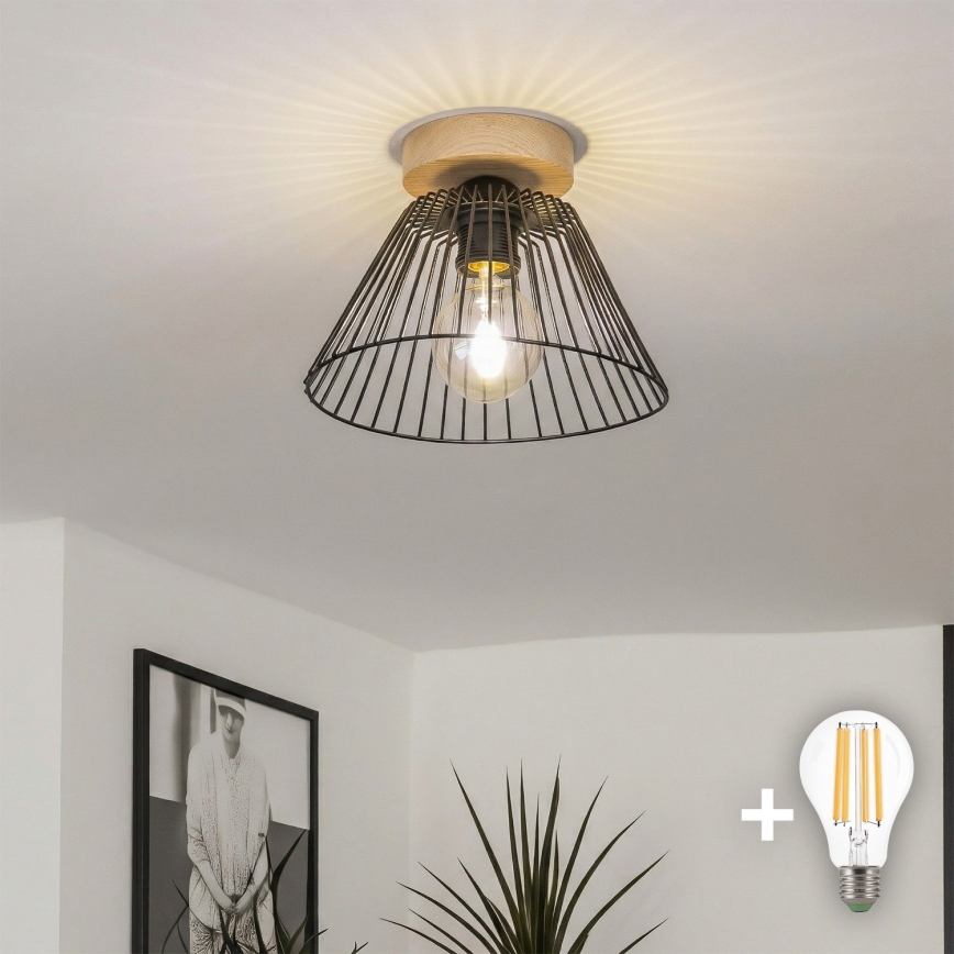 Brilagi - LED Přisazený lustr CERIA WIRE 1xE27/40W/230V pr. 21 cm černá/dub