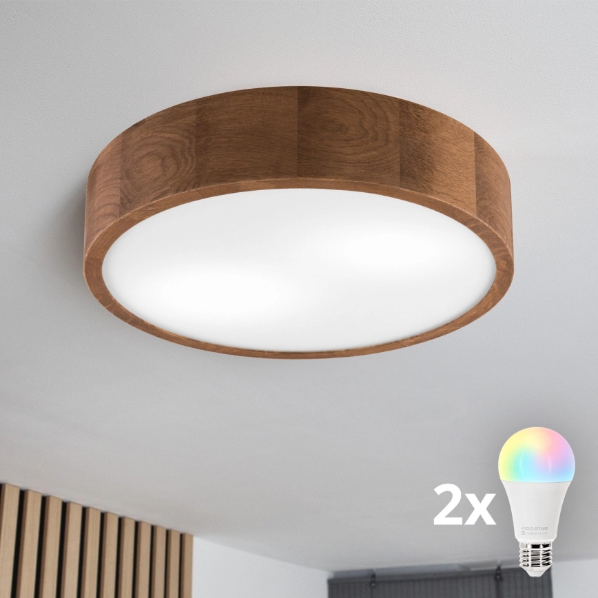 Brilagi - LED RGBW Stmívatelné stropní svítidlo CARVALHO 2xE27/15W/230V 2700-6500K Wi-Fi dub pr. 37,5 cm
