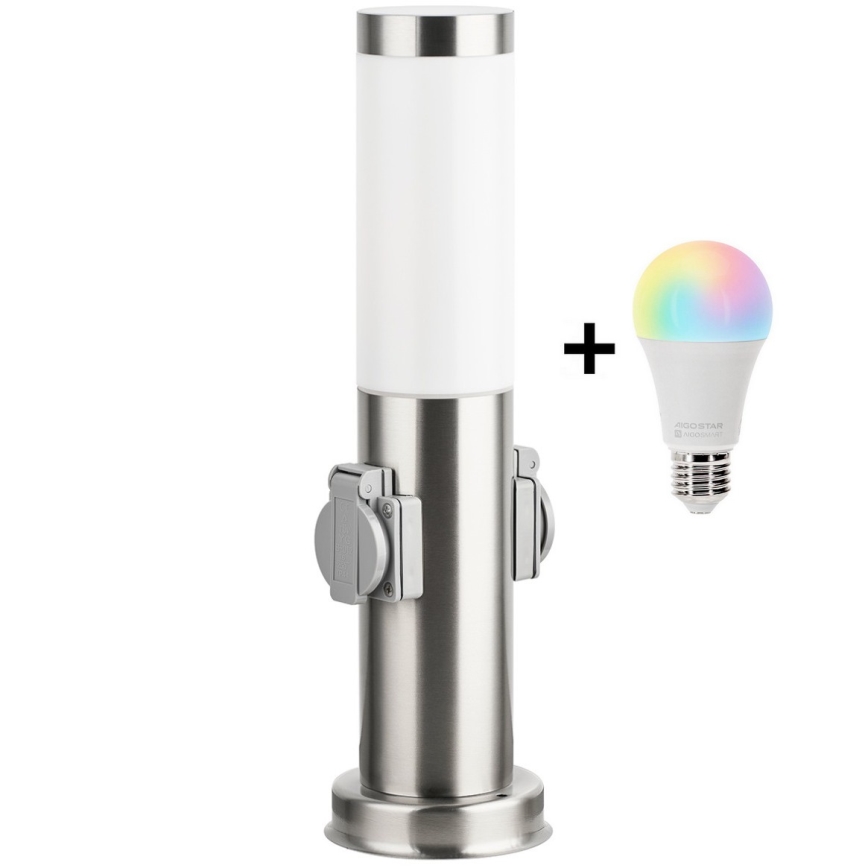 • Brilagi - LED RGBW Stmívatelná venkovní lampa se 2 zásuvkami 1xE27/15W/230V 2700-6500K IP44 40 cm matný chrom