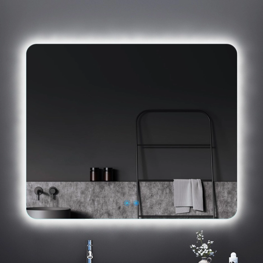 • Koupelnové bezrámové zrcadlo s funkcí vyhřívání proti zamlžení a LED podsvícením.