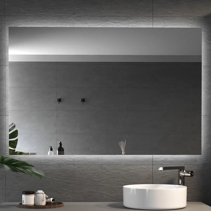 • Koupelnové bezrámové zrcadlo s funkcí vyhřívání proti zamlžení a LED podsvícením.