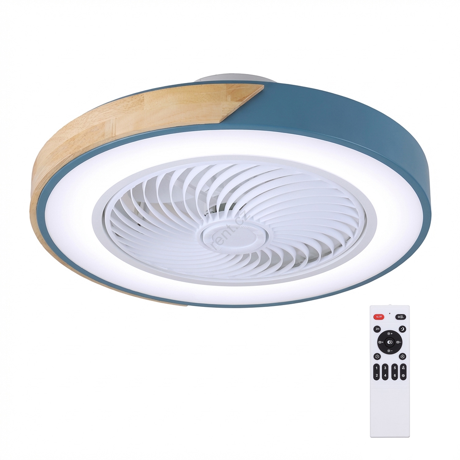 Brilagi - LED Stmívatelné stropní svítidlo s ventilátorem LED/38W/230V 3000-6500K pr. 50 cm modrá/dub + dálkové ovládání