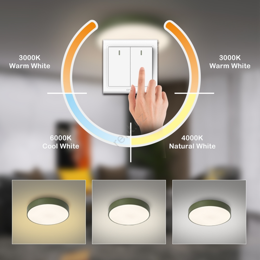 • Změna teploty chromatičnosti krokově jednoduchým stiskem nástěnného vypínače.