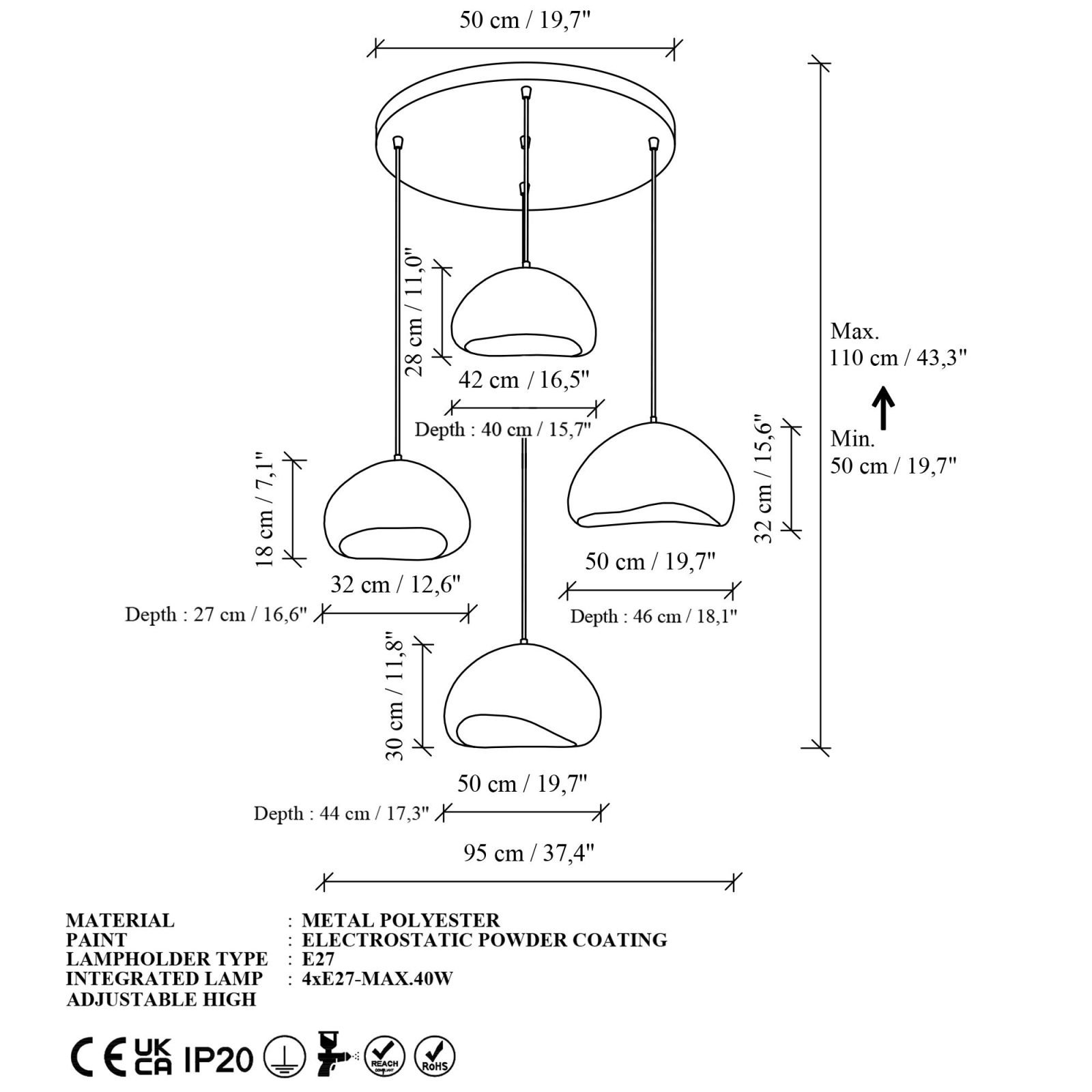 Brilagi - Lustr na lanku WABI SABI 4xE27/40W/230V pr. 95 cm bílá