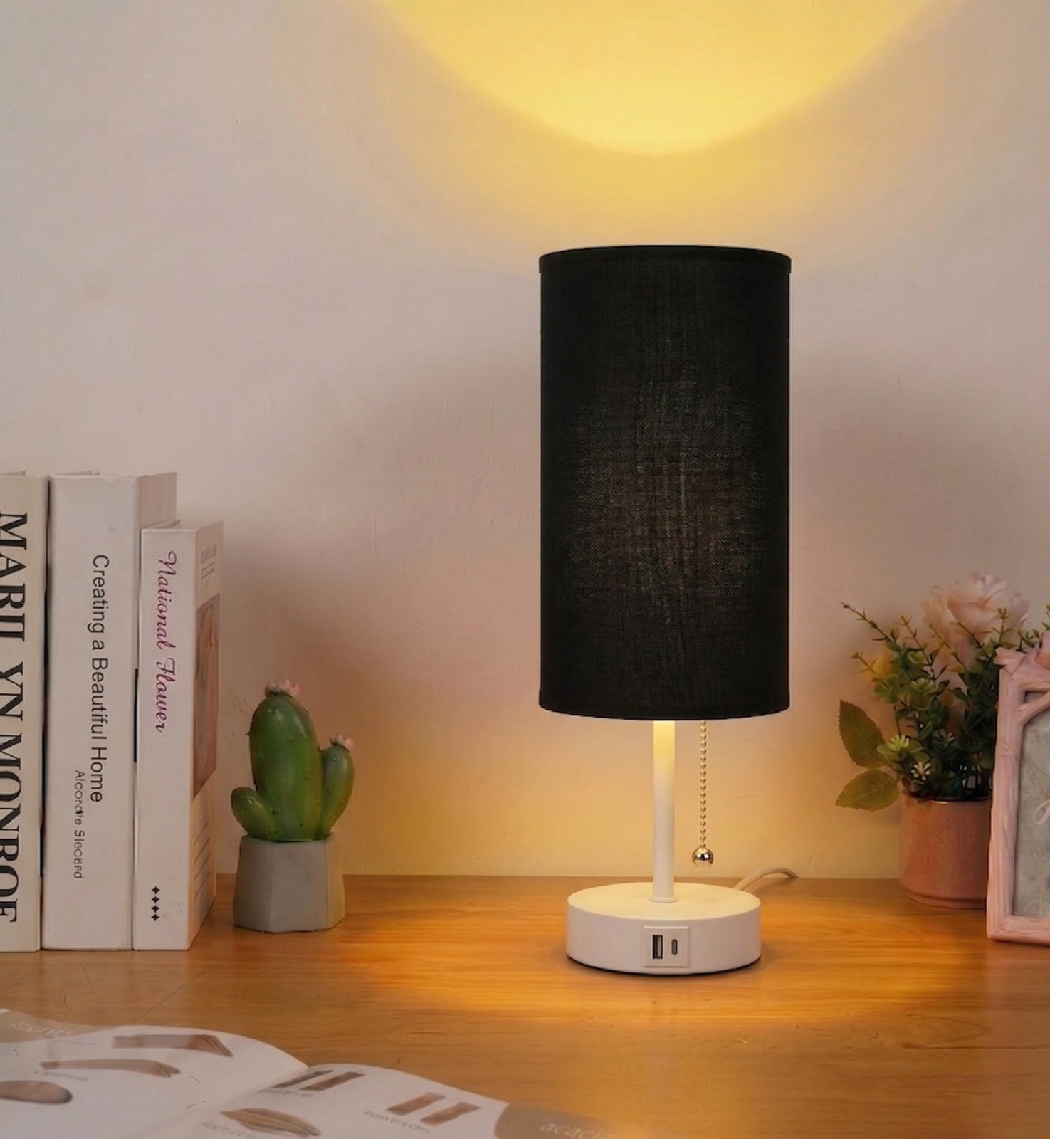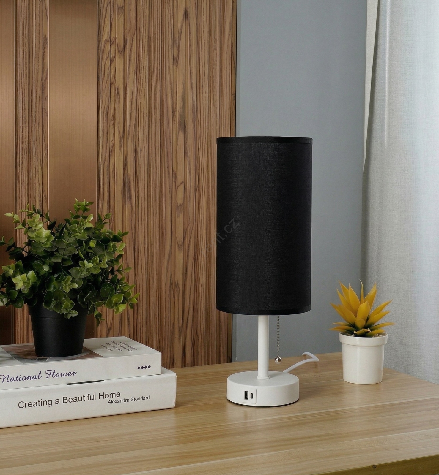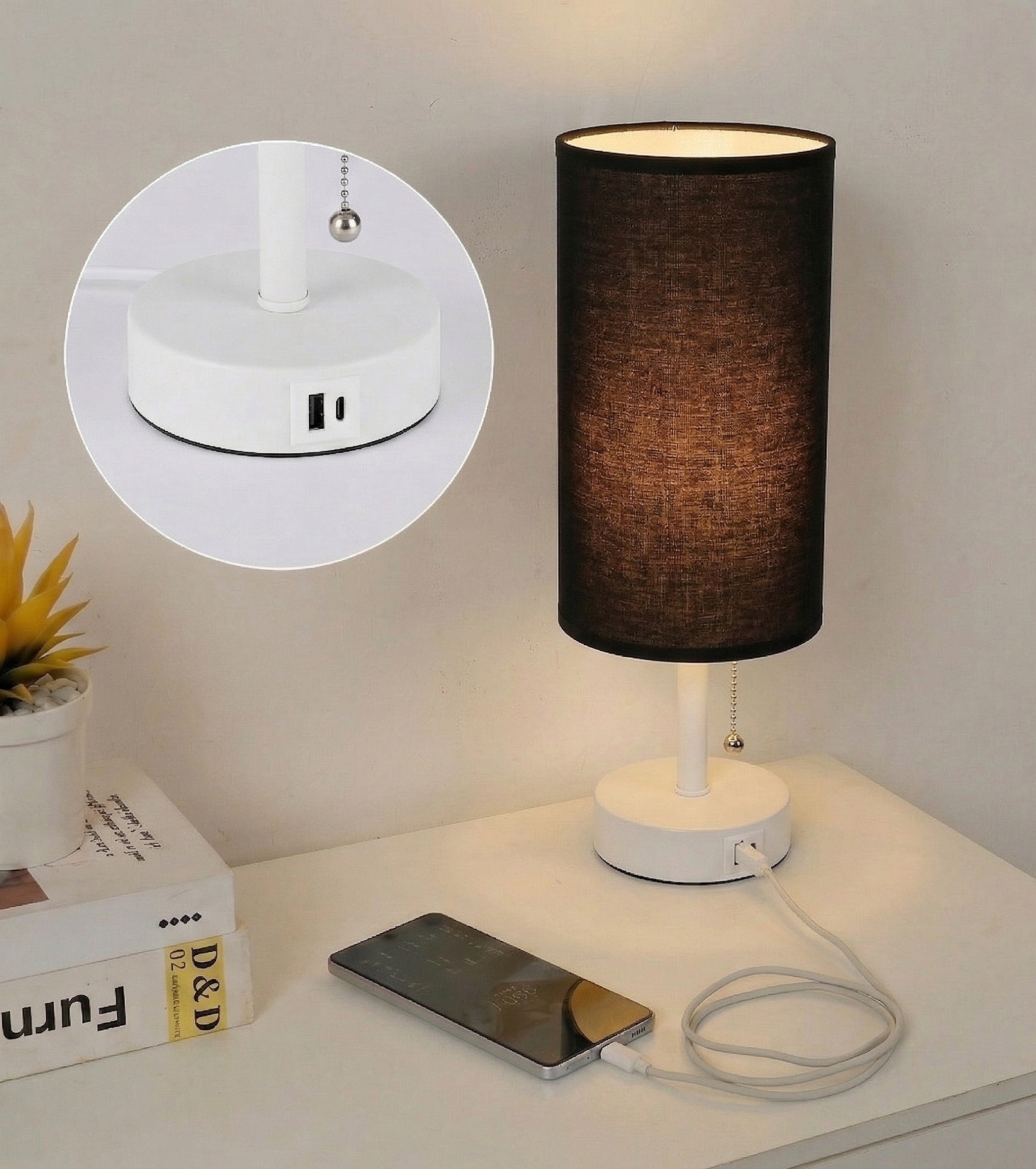 • Brilagi - Stolní lampa s USB portem TABLON 1xE27/25W/230V černá/krémová