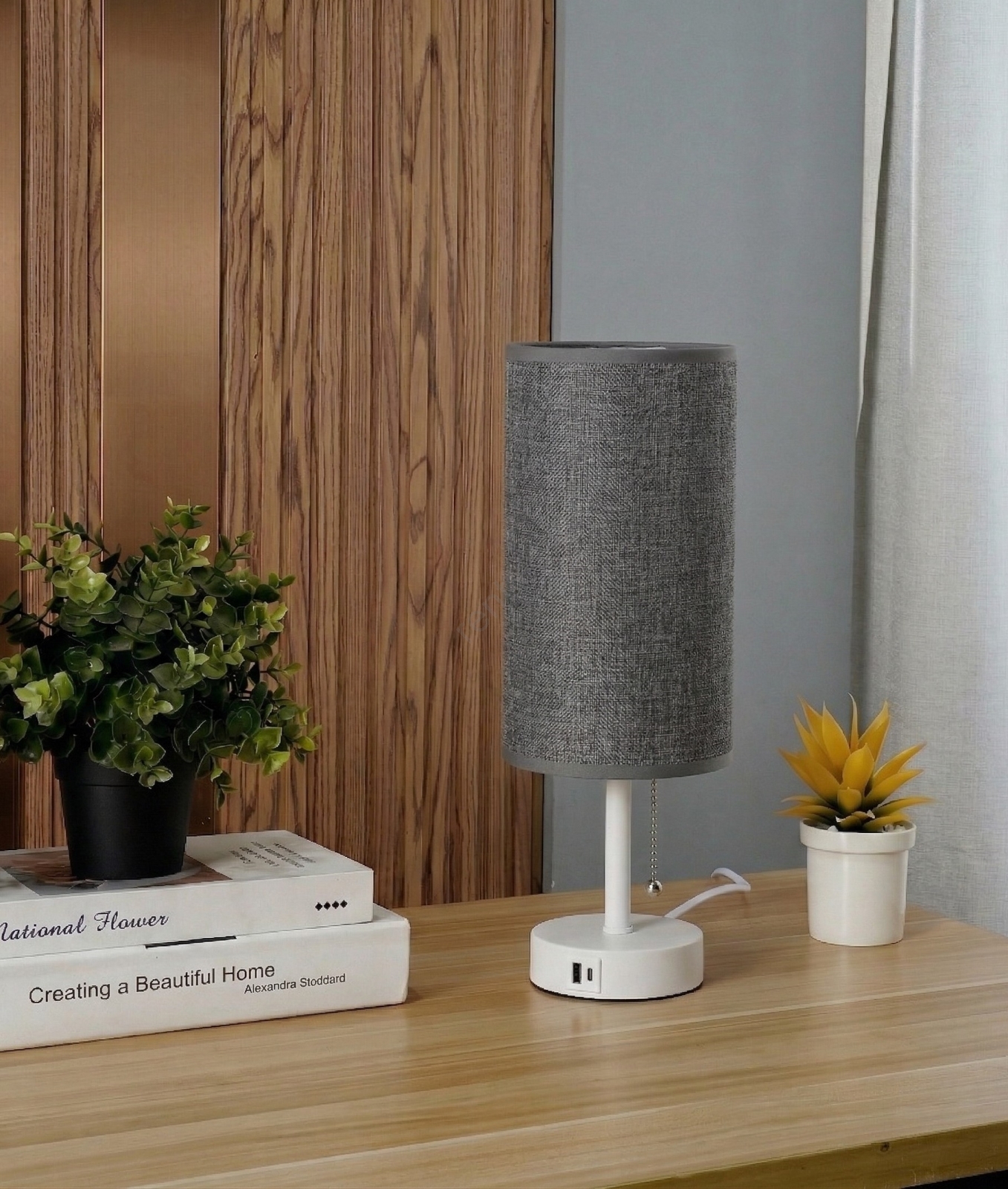 • Brilagi - Stolní lampa s USB portem TABLON 1xE27/25W/230V bílá/šedá