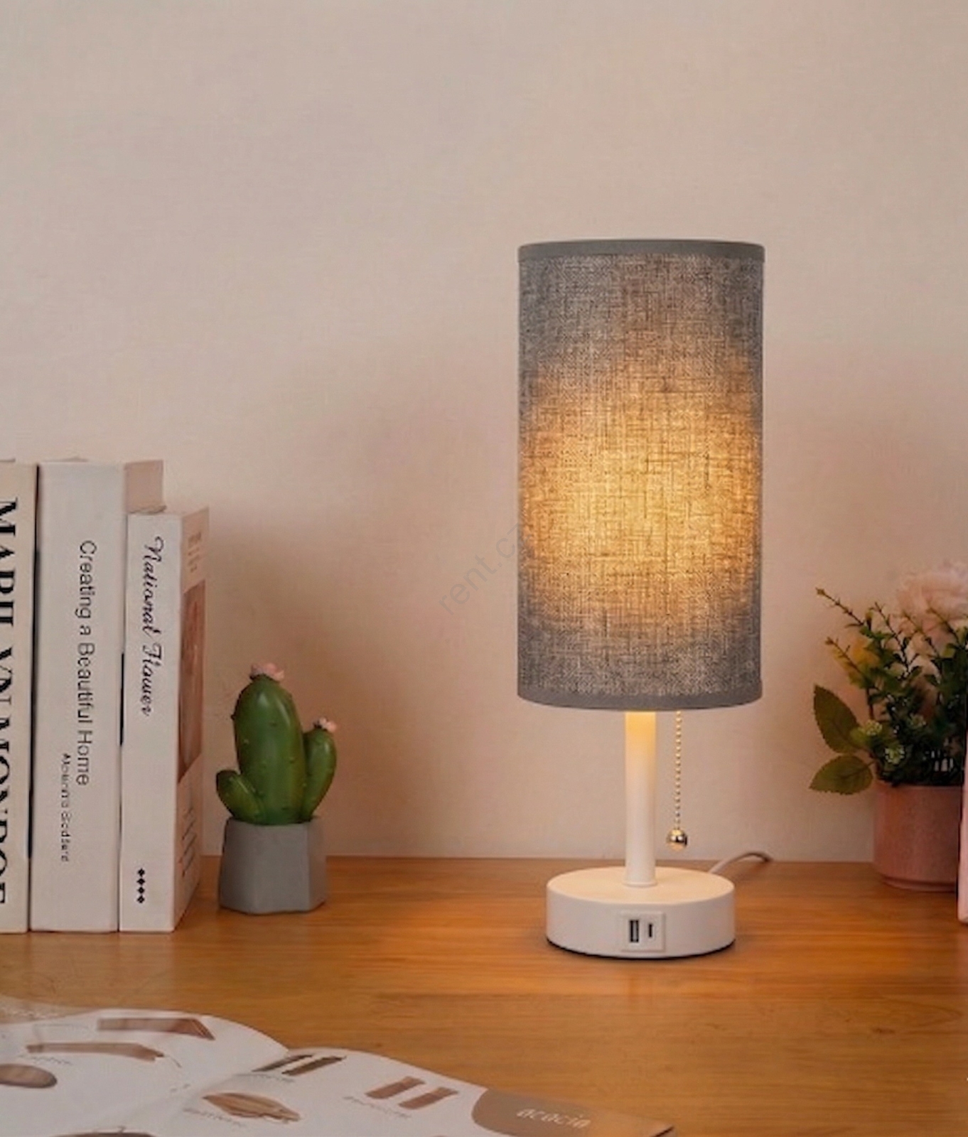 • Brilagi - Stolní lampa s USB portem TABLON 1xE27/25W/230V béžová/bílá