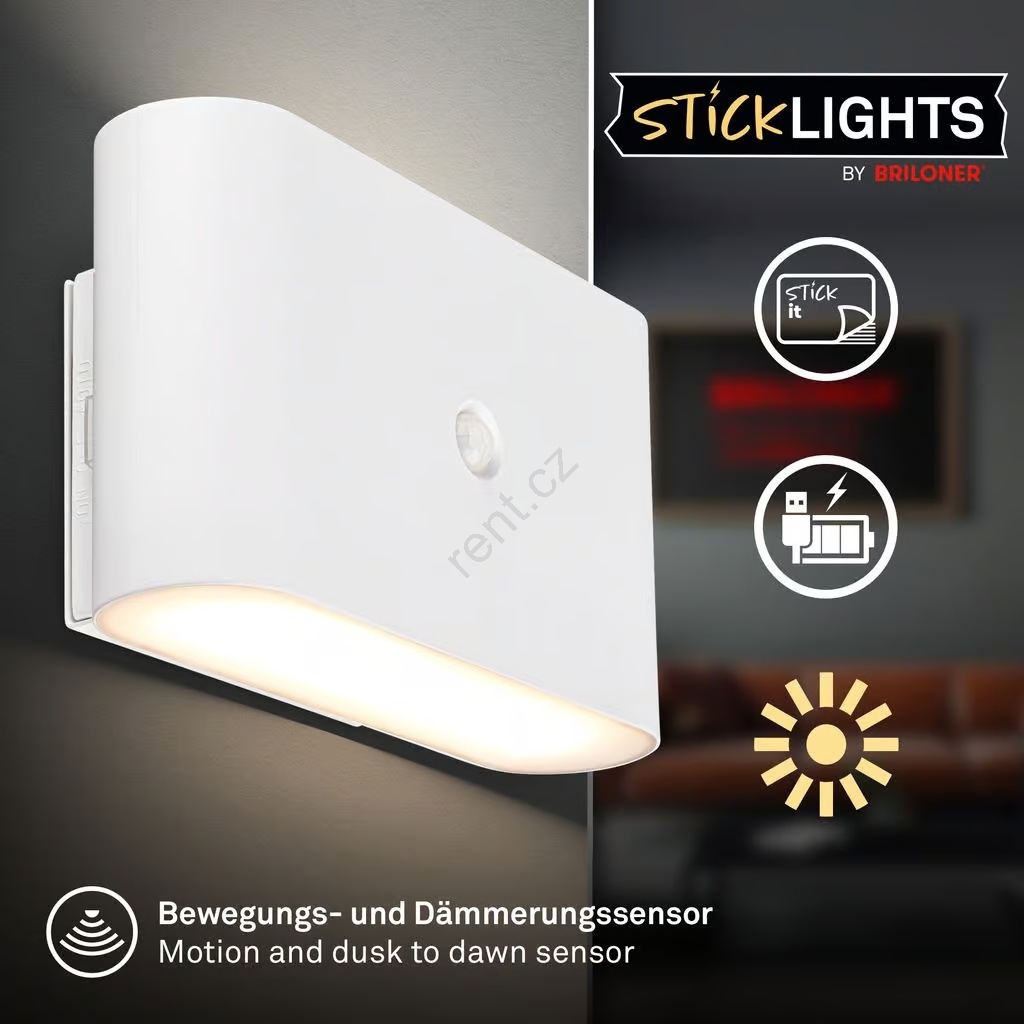 • Briloner 3878016 - LED Nabíjecí nástěnné svítidlo se senzorem pohybu a soumraku CHAT LED/3W/5V 2000 mAh bílá