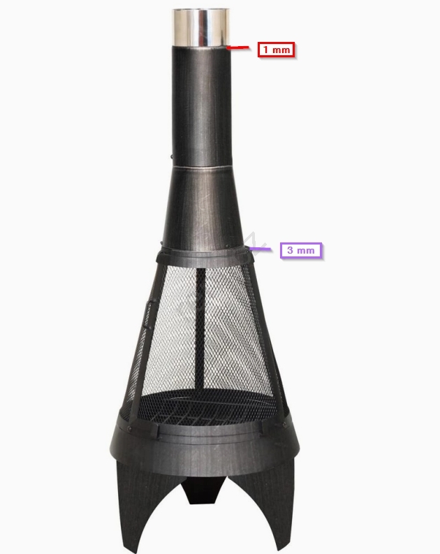 • Síla materiálu komínu: 1 mm.