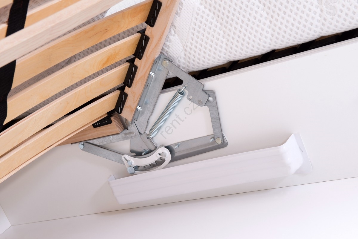 • Postel je vybavena velkým úložným prostorem se vstupem od nohou pro uskladnění lůžkovin a dalších předmětů.