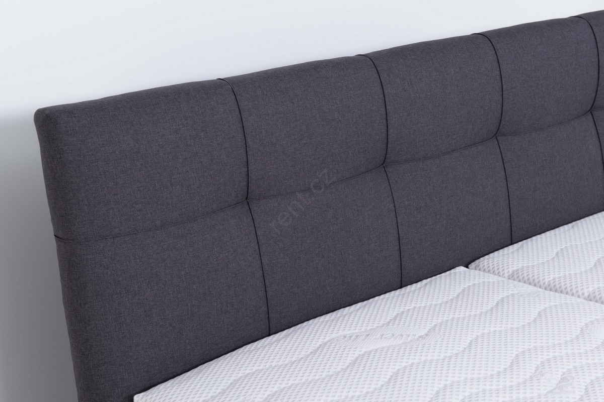 • Čalouněná dvoulůžková postel s volně loženými matracemi se pyšní detailně propracovaným, elegantně prošitým čelem.