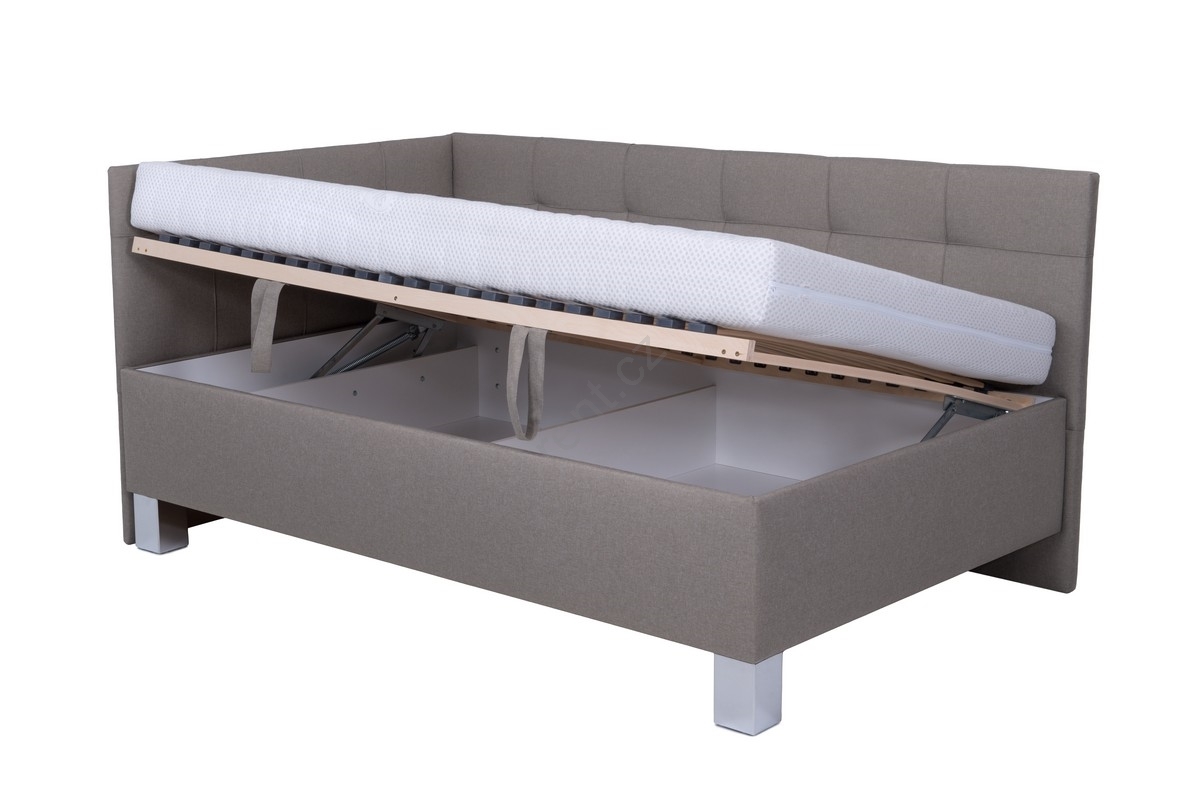 • Postel je vybavena výklopným systém z boční části pro snadný přístup k prostornému úložnému prostoru, který je navíc vybaven větracími mřížkami pro lepší cirkulaci vzduchu.
