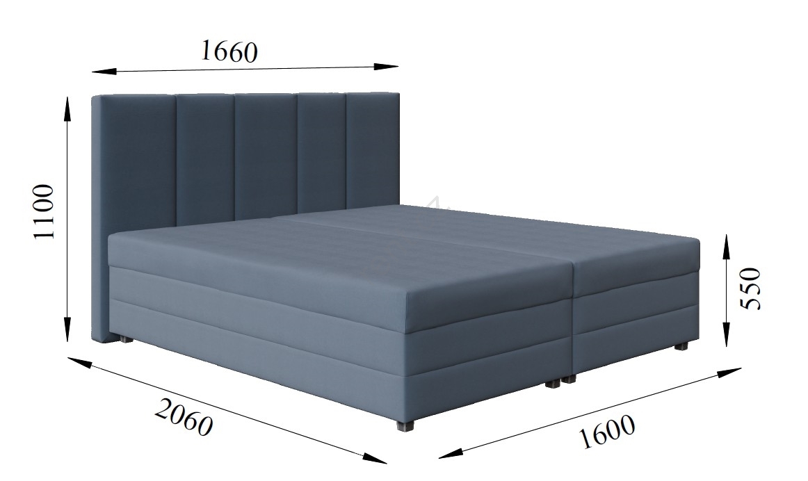 • Čalouněná dvojlůžková postel s pružinovými matracemi se vysokým rovným elegantním čelem.