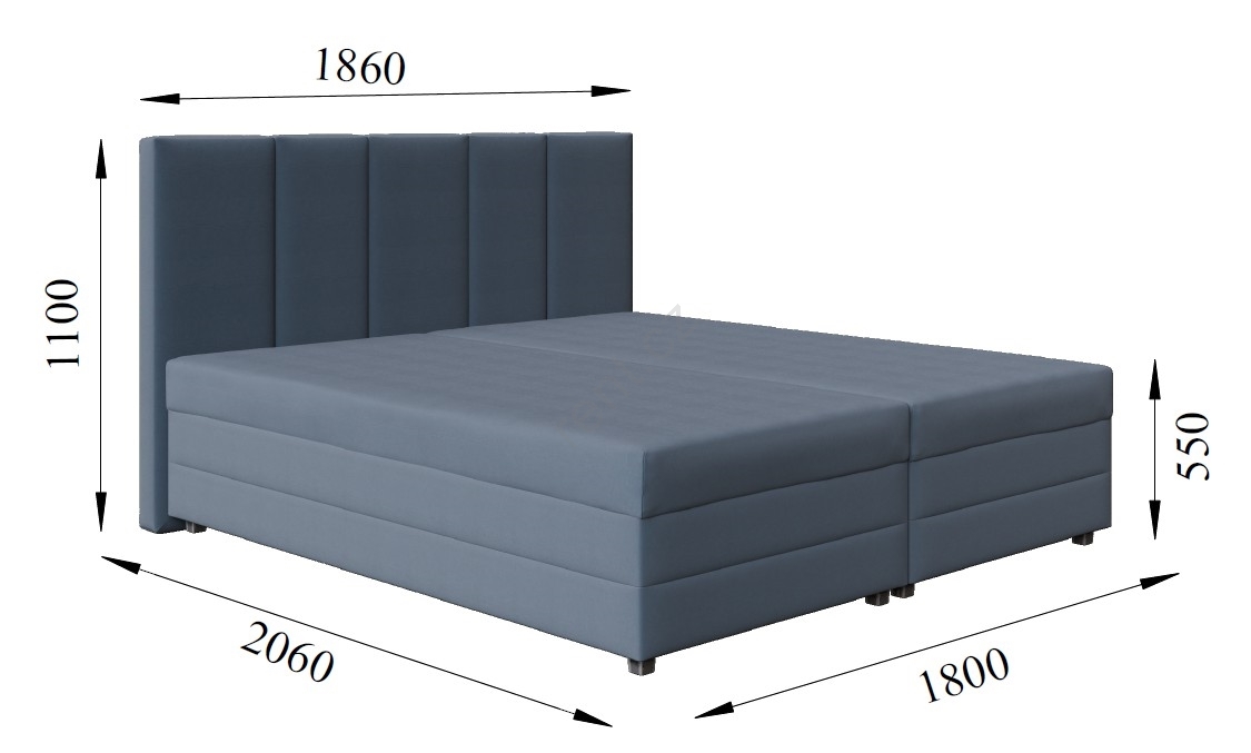 • Čalouněná dvojlůžková postel s pružinovými matracemi se vysokým rovným elegantním čelem.