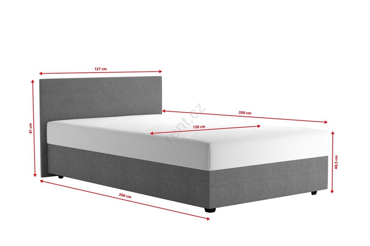 • Čalouněná postel s matrací se pyšní elegantním minimalistickým čelem.