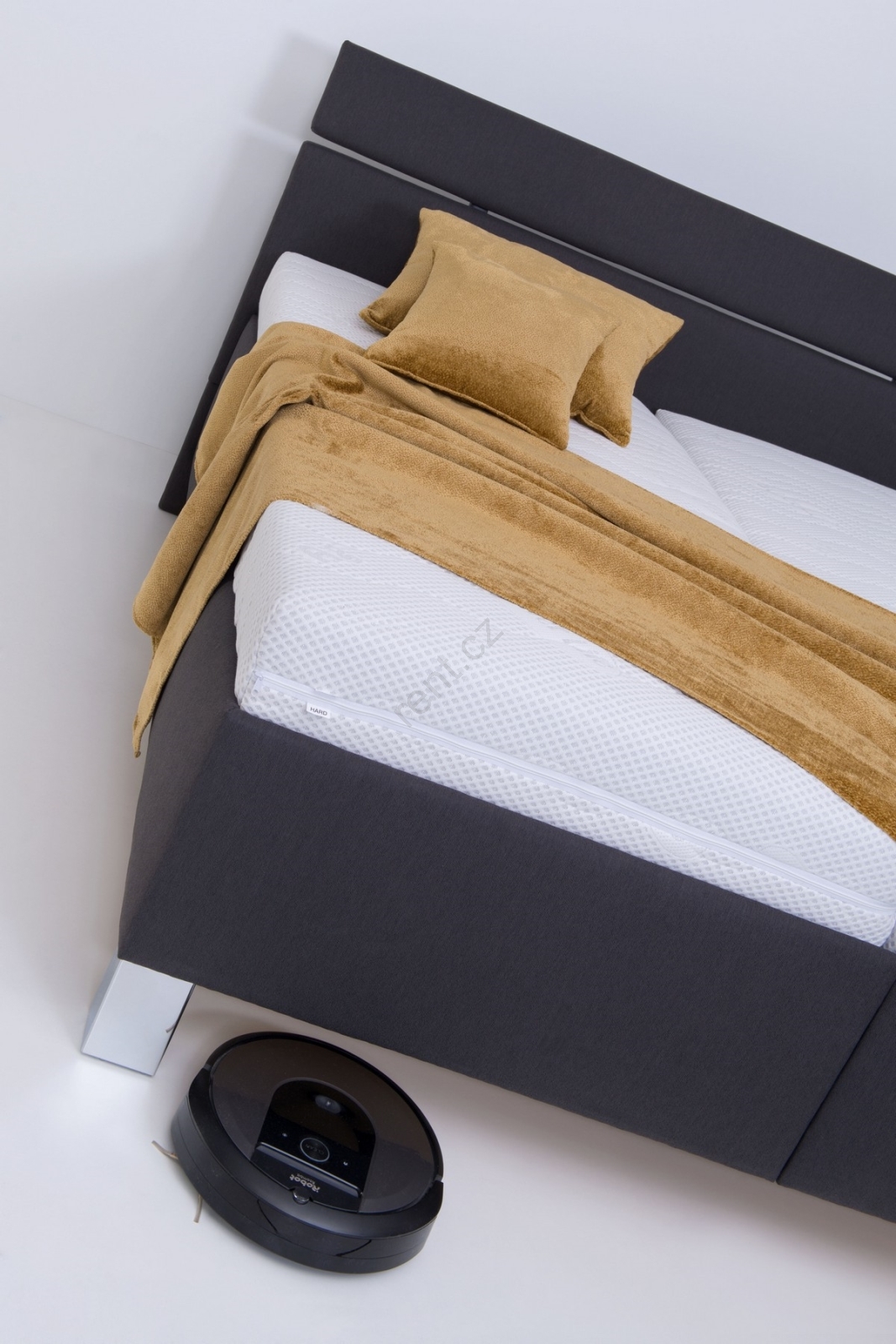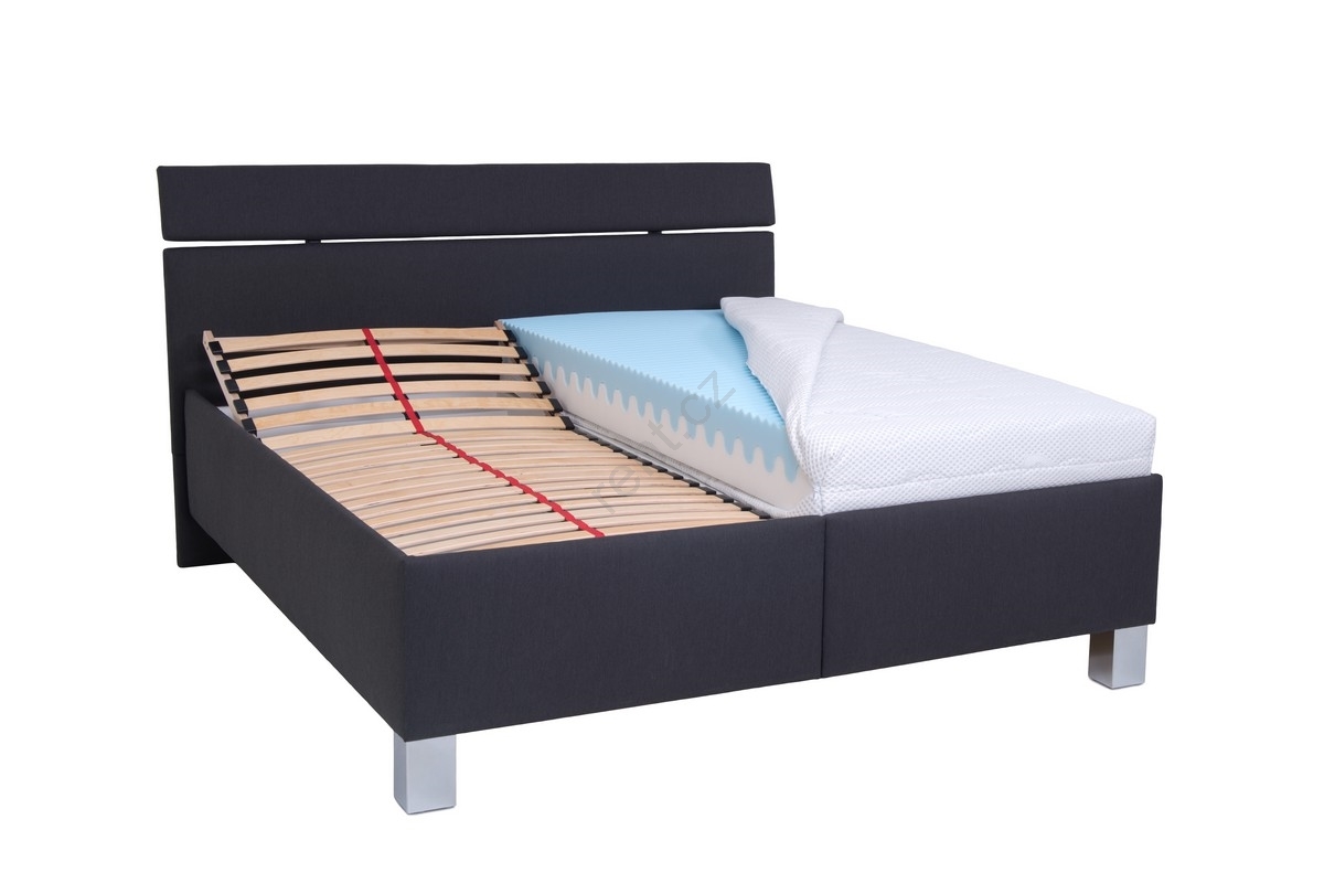 • Komfortní dělené čelo postele - potažené příjemnou látkou s PUR pěnou pro měkkost a pohodlí, ideální například při čtení.